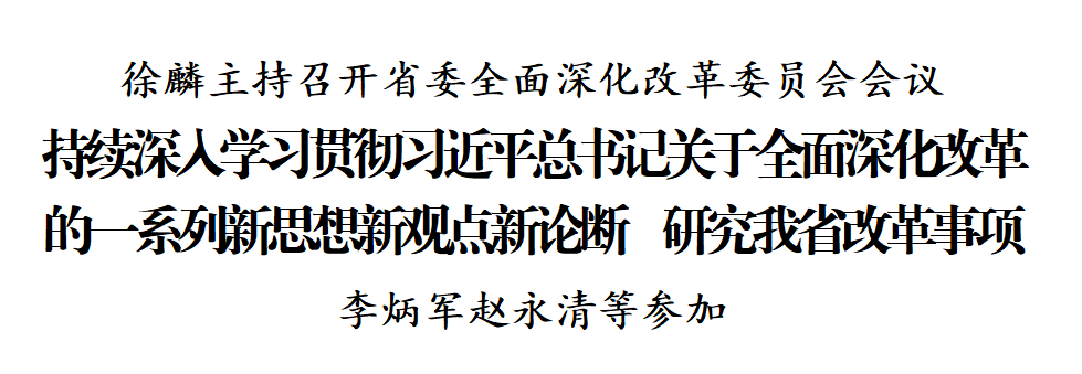 12月27日,省委书记、省人大常委会主任、省委全面深化改革委员会主任徐麟主持召开省委全面深化改革委员会会议,持续深入学习贯彻习近平总书记关于全面深化改革的一系列新思想、新观点、新论断,贯彻党的二十届三中全会和中央经济工作会议部署,落实省委十三届六次全会暨省委经济工作会议要求,研究我省改革事项。省委副书记、省长、省委全面深化改革委员会副主任李炳军,省政协主席赵永清,有关省领导参加。