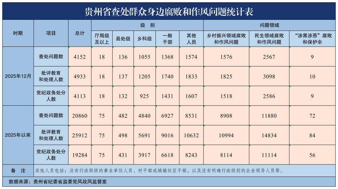 2025年12月贵州省查处群众身边腐败和作风问题4152起