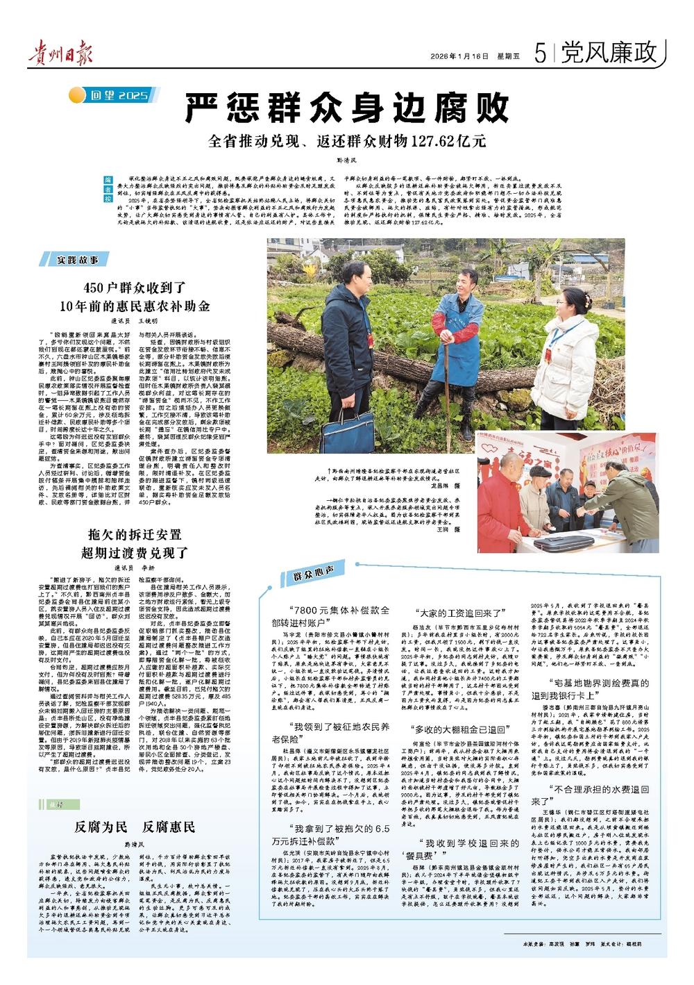 回望2025丨严惩群众身边腐败 全省推动兑现、返还群众财物127.62亿元
