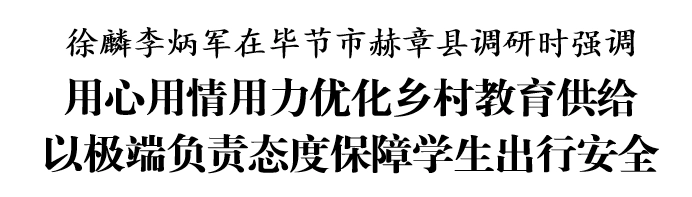 夯实乡村教育根基,关系教育优质均衡发展。徐麟、李炳军到赫章县部分乡镇调研农村地区中小学校布局优化调整情况,叮嘱当地围绕办好人民满意的教育,适应农村学龄人口变化持续完善教育资源配置,坚持实事求是、尊重群众意愿,保留并办好必要的乡村小规模学校和幼儿园,加强乡镇寄宿制学校建设,改善各类学校师资、设施等条件,推动乡村教育高质量发展,让群众更加可感可及。