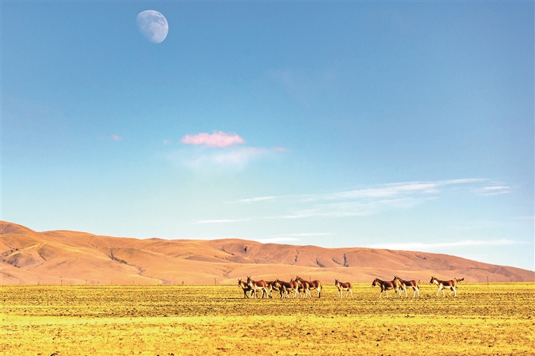 地处藏北的羌塘国家级自然保护区,平均海拔超过4500米,栖息着藏羚羊、藏野驴、雪豹、黑颈鹤、藏狐、棕熊等多种珍稀动物,被誉为“野生动物的乐园”。得益于持续保护,这片集寥廓荒凉与生命坚韧于一体的净土,在无尽苍穹下,默默见证着生命的奇迹与守护的可贵。图为近日在羌塘国家级自然保护区拍摄的藏野驴。 新华社记者 姜帆 摄