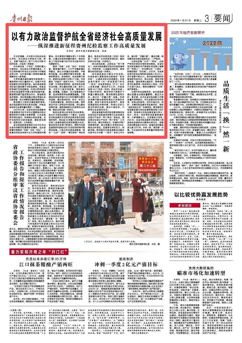《贵州日报》|以有力政治监督护航全省经济社会高质量发展 ——纵深推进新征程贵州纪检监察工作高质量发展