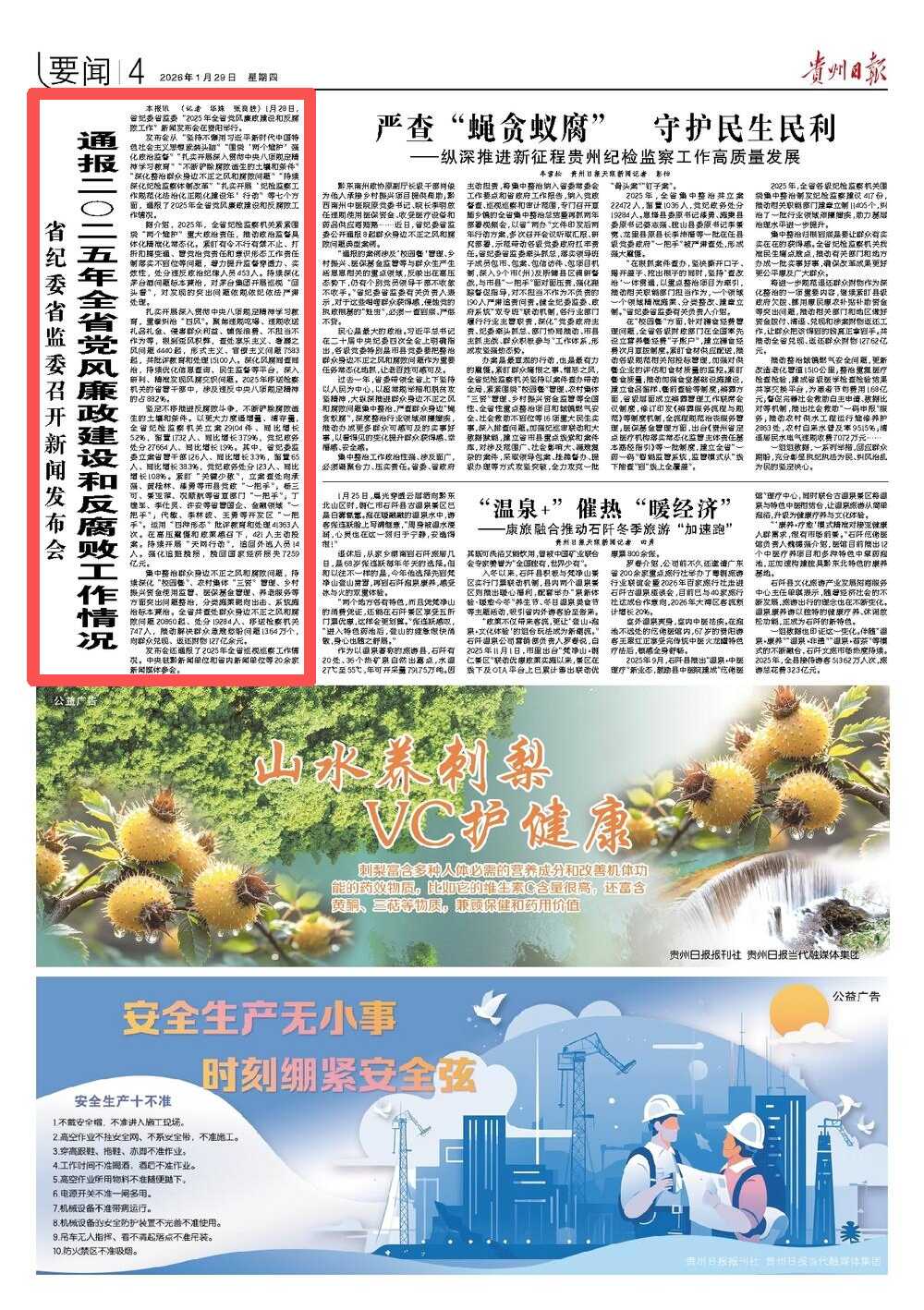 《贵州日报》头版|省纪委省监委召开新闻发布会 通报二〇二五年全省党风廉政建设和反腐败工作情况